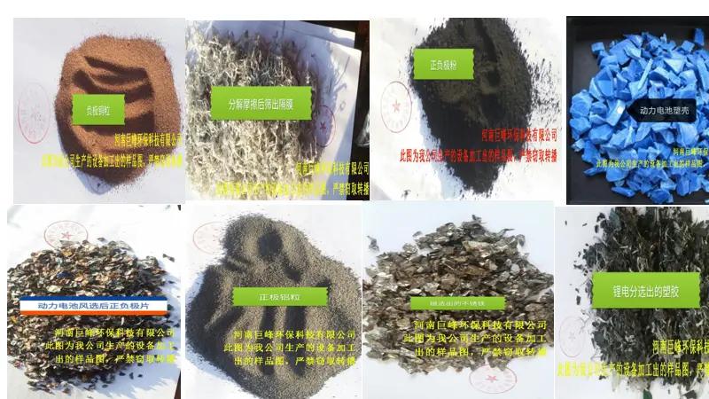 廢舊鋰電池破碎分選后的各種物料——巨峰環保