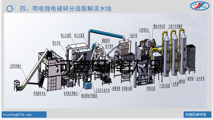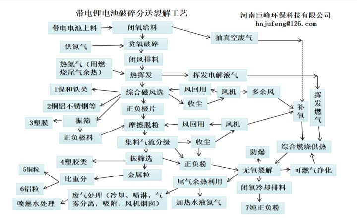 廢舊鋰電池拆解破碎分離回收整套設備廢舊鋰電池的拆解回收,廢電池回收分離技術,這拆解分離回收技術工藝適用于有電的廢舊動力鋰電池,磷酸鐵鋰電池,三元鋰電池,鋰離子電池。主要的處理回收設備有帶電破碎設備,無氧裂解子母裂解爐,氣流高速摩擦分選分離設備,廢氣凈化處理設備,電解液的熱揮發系統。這廢舊鋰電池拆解分離回收處理整套設備從最開始的帶電破碎到最后的廢氣凈化排放這一系列的操作反應,基本上全自動化運轉,多處機械設備設置了防爆處理,更安全的操作,才會更放心的使用。